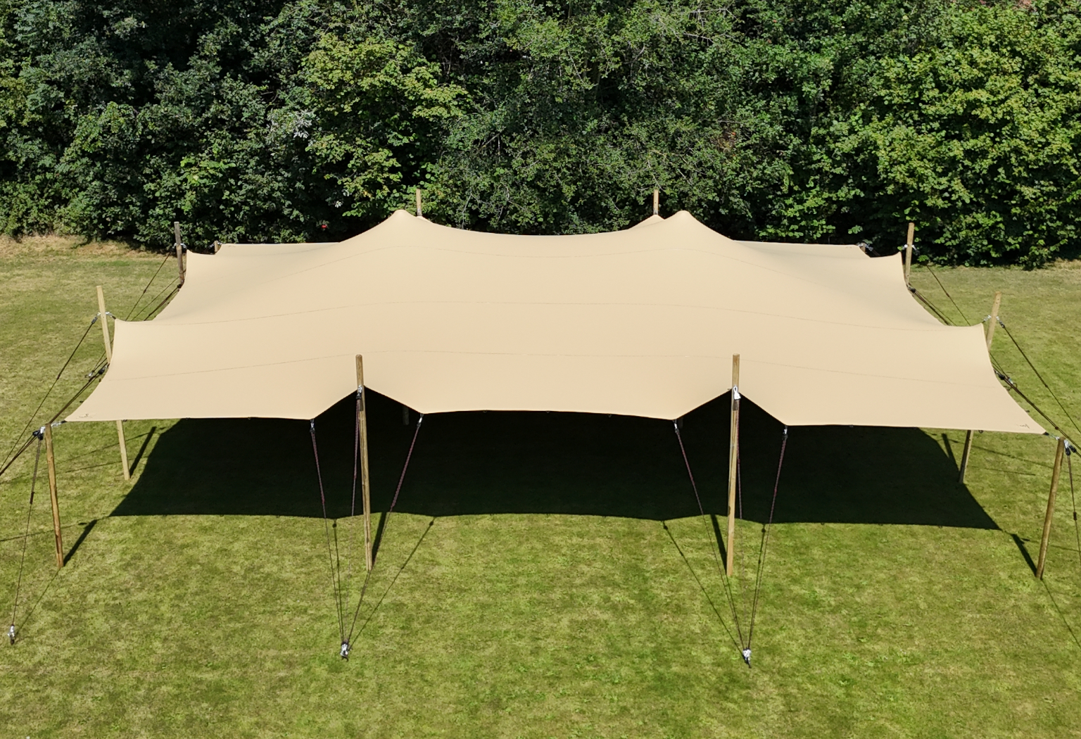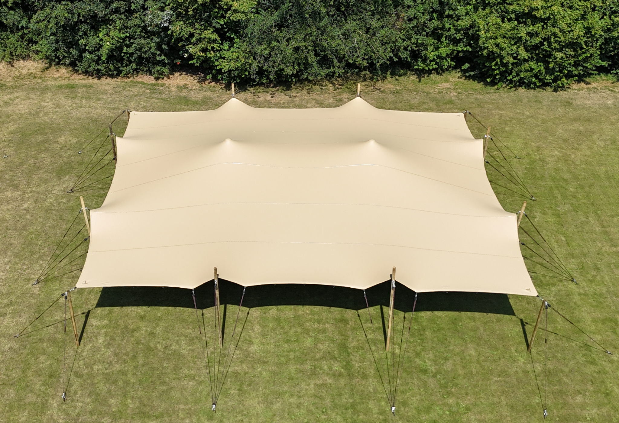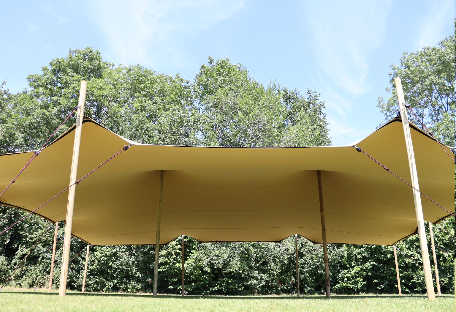 Våra stretchtält är tillverkade med noggrann uppmärksamhet på detaljer och kvalitet. Tyget på 720gsm är belagt på ena sidan och har en tekniskt avancerad textilfinish på undersidan, utvecklad exklusivt av vårt interna team. Denna kombination av högkvalitativa material och brandskyddande textilier garanterar en hållbar och säker lösning som säkerställer att ditt evenemang inte bara är bekvämt, utan också bekymmersfritt.